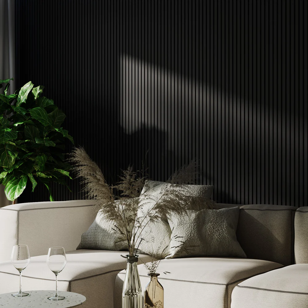Matte black slat wood panel – Ebony